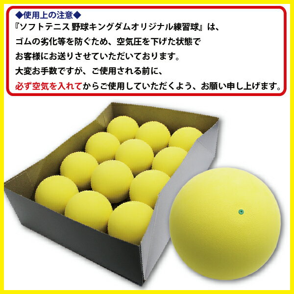 【使用上の注意】 『ソフトテニス 野球キングダムオリジナル練習球』は、 ゴムの劣化等を防ぐため、空気圧を下げた状態で お客様にお送りさせていただいております。